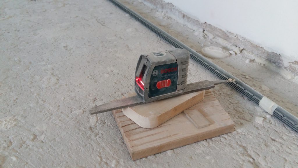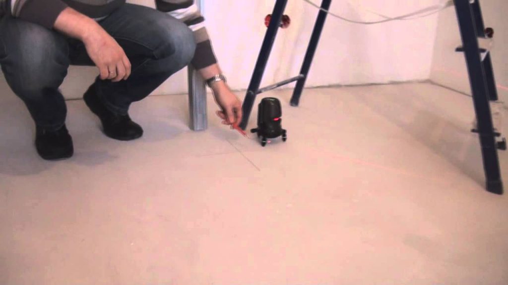 - Сперва определиться с уровнем поверхности наливного пола, воспользовавшись лазерным уровнем.
