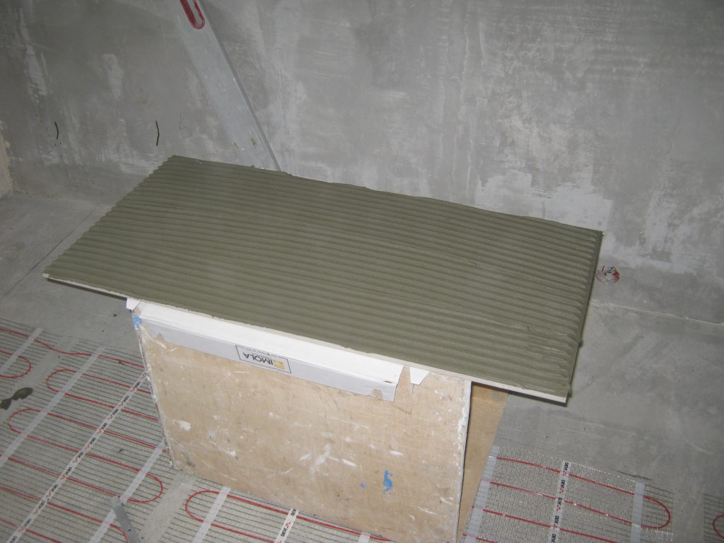 Внимание! Если Вы используете систему теплого пола, то проверьте, что она отключена. В противном случае клей быстро высохнет и не сможет держать плитку.