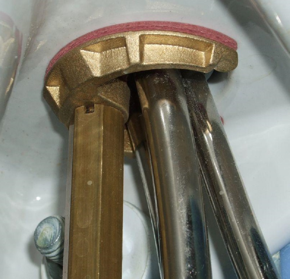 - Накрутите крепежную гайку на корпус самого смесителя с обратной стороны мойки. Гайку нужно хорошо затянуть. Однако прежде чем затягивать, нужно выставить необходимое положение смесителя.